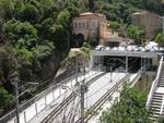 Station of Monistrol de Montserrat (for R5 services to Barcelona-Plaça Espanya and Manresa-Baixador), seen from an AM EMU, while running up towards Montserrat.
