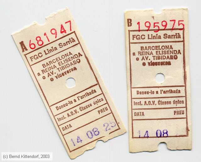 FGC Linia Sarria - Fahrkarten Zwei Fahrkarten für FGC-Züge in Barcelona.