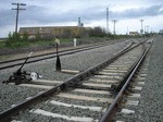 Adif - Estación de Coscurita (Soria), en el ferrocarril de Soria a Torralba. Detalle de un contrapeso del sistema de señalización mecánica con que aún cuenta la estación.