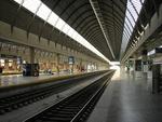 Marquesina y andenes de la estación de Sevilla, zona reservada a los AVE. 5/96 Platform of Sevilla railways station.