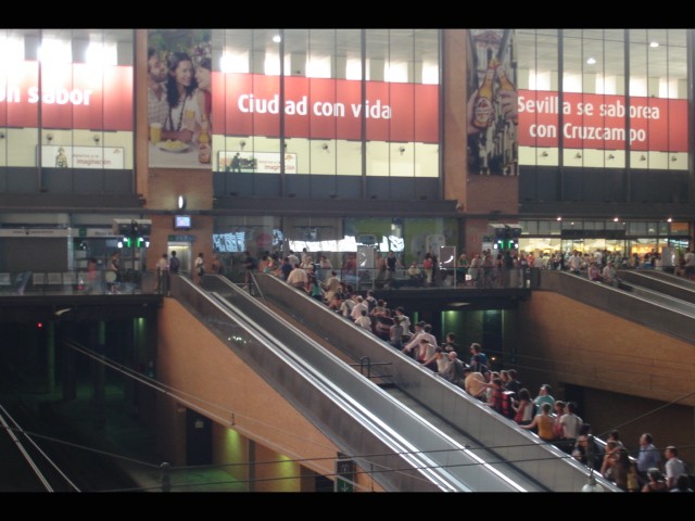 | SantaJusta02 Thursday 10 August 2017 South view of the escalators at Sevilla Santa Justa rail station. josh_hanz (at) hotmail.com |