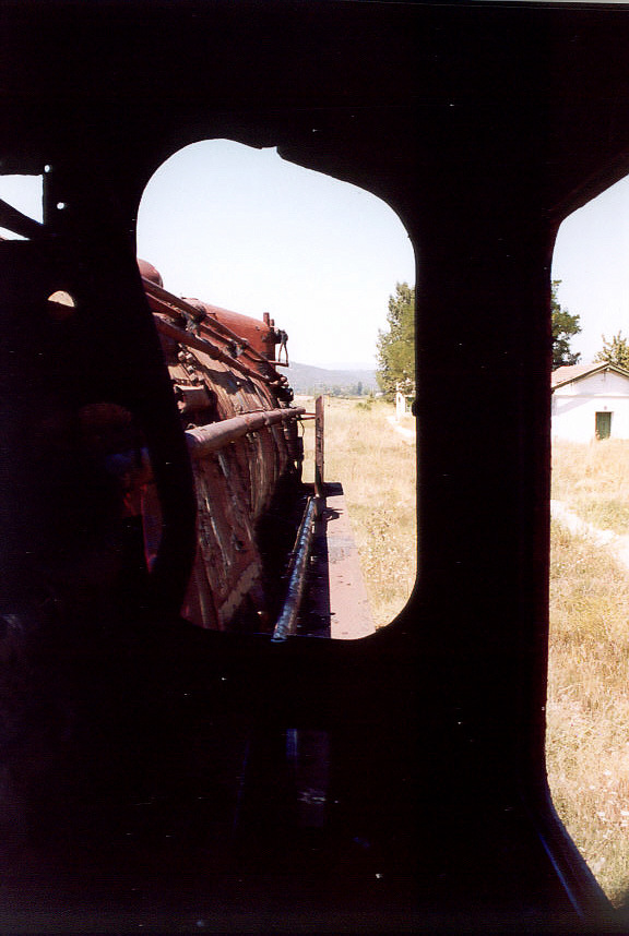 View from the cab of steam loc RENFE 141F2401 at Horna-Villarcayo (Spain) of closed line Santander –Mediterrano aug 2003