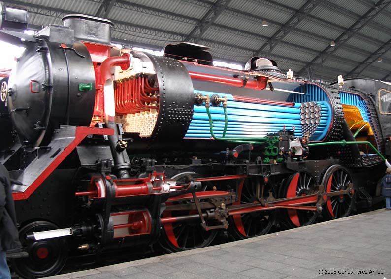 Seccionada para ver el funcionamiento de una locomotora de vapor. Cut to see the functioning of a steam locomotive. Station: Museo Delicias (Madrid) - 22/10/2005