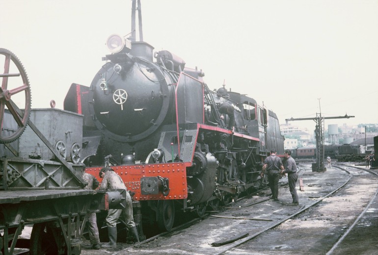 Renfe 141 f 2227 (Euskalduna n° 327/1954). part of the batch 141 f 2221 to 2230. Miranda del Ebro, 1965. Photo C. Schnabel collection Jean-Pierre Vergez-Larrouy (jean-pierre.vergez@tele2.fr) |