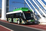 One of the 6 new hybrid trolleybus units Skoda Solaris Bluedrive for Tram Service between University Jaume I, Castellon de la Plana, and Grao de Castellon running along Riu Sec bridge. Photo by Fernando Monroy Peña taken 20.Dec.2014. Email: fdomonroy@gmail.com |