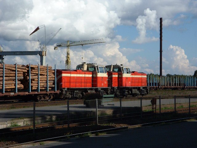Two locomotives class Dv12 (and one in the background) shunting in the station