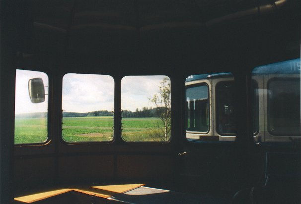 Green fields of Porvoo seen from a Dm7 "Lättähattu" museum DMU in July 2000. Photo by Henri Hovi, scan by IFI Oy photo laboratory |