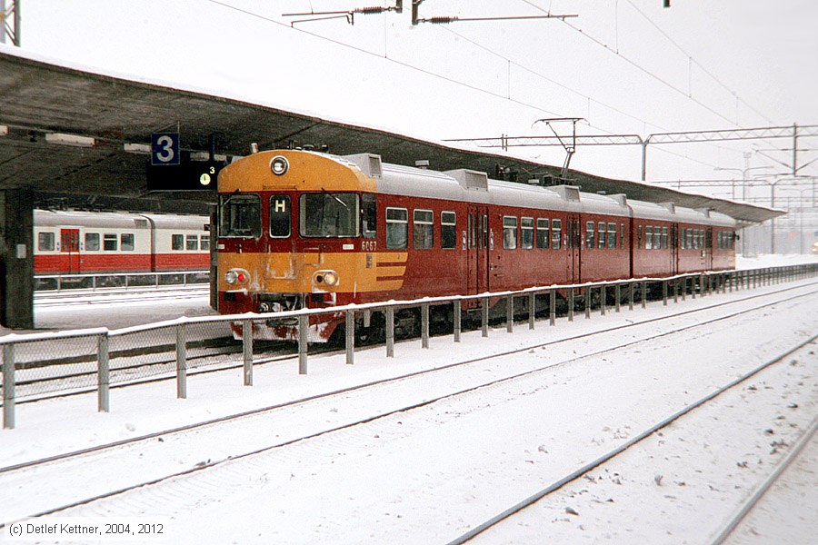 VR - 6067 Triebwagen 6067 (Typ Sm2, Baujahr 1976) im Bahnhof Kouvola, aufgenommen am 31. Januar 2004.
