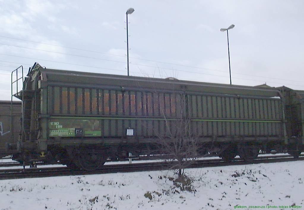 | Railtrans two-car unit for transportation of wood chips. Gratwein-Gratkorn, 2003-11-03. |