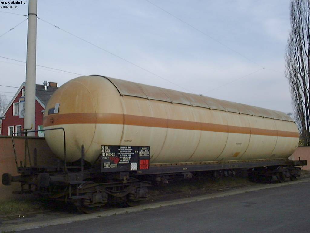 | SNCF gas tank car 33 87 791 9 482-2 in Graz Ostbahnhof. 2002-03-31. tbk |