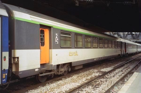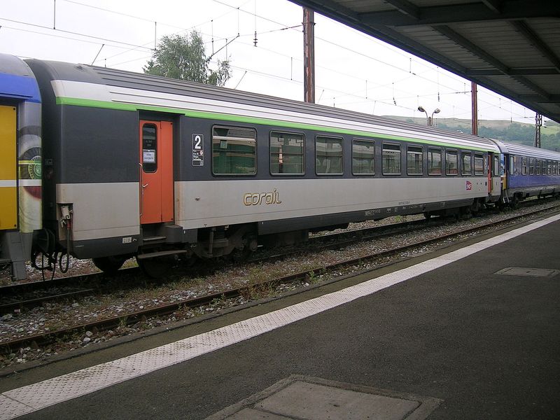 This car was rebuilt in the early-90s from daytime 1st-class, open-room cars (A10tu or A10rtu), in an effort to upgrade seated-accommodation offered on overnighters. Metz-ville. 17th June 2004. P.L.Guillemin (plguillemin@yahoo.fr) |