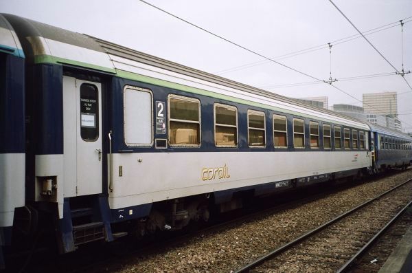 This car is part of the 3rd and very last batch of Bc10ux cars (VU-84, 30 cars). It was specifically built for French-Iberic sleepers (Paris <-> Madrid/Lisbon/Oporto/Vigo, from 1985 until 1996), so as to cater for soaring traffic and to replace 18 antiquated DEV Bc8x (U-46) cars, adapted and refurbished in 1968/1973. Unlike older Bc10ux (VU-75 and 78), and as daytime VU-78 and all subsequent Corail compartment-cars (VU-80 and 84, including "convertible" AcBcux) these VU-84 Bc10ux have "super-wide" carbodies, with 2.867m in width, instead of 2.825m. These cars also have enhanced air-conditioning, comensurate with Iberic summer temperatures. From a technical point of view, this fleet bears a strong resemblance with Bc10x-9600 and 11600 of RENFE. Following the extinguishment of French-Iberic conventional sleepers (1992-1996), these cars lost their RIC registration, and are thence confined to French domestic services, although they have retained their original 4-voltage inverters. Paris-Austerlitz. 1st September 2005.
