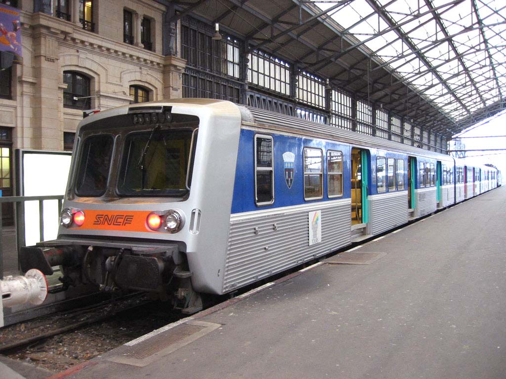 One can clearly notice the location of the former central vestibule, in use when such stock would run on Paris Commuter services as RIB-60. Upon remodelling (1988), the vestibule was obturated to extend passenger saloons, hence the larger window. The smaller windows actually smack very much of the early-60s, and can also be found on the first batches of Z5300s and Z6100s. One can also notice the Z2-style interiors.