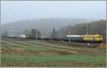| Sncf Diesel 67623 Infra - This train is seen approaching the nice station of Vauboyen, on the southern great belt of Paris, East of Versailles, by a dark and foggy weather. It is hauling miscellaneous service cars, of which the first is an old DEV, dedicated now as mobile office and workshop for maintaining teams. 15th November 2016 Pmeunier23@aol.com www.pixyrail.com |