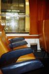 Interiors of a Cab/Power/Second-class car (TBDu) of a RTG Jet Train of SNCF, seen at Lyon-Perrache, awaiting departure to Bordeaux-St Jean on Train 4580. Seats are an improved version of that of B10t USI cars. Whereas they were reclinable until the late-80s, they have been fixed since then. The banana plastic leather is doubtless old-fashioned. Yet, interiors are still well-kept. The Turbine compartment is located further ahead. 31st December 2003 P.L.Guillemin (plguillemin@yahoo.fr). |