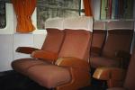First-class interiors of a Class 2800 (X2905) DMU of SNCF, seen upon turnaround at St-Claude. Airline-style seats, with one of the highest pitch in the whole SNCF fleet... Interiors were refurbished in 1976-78. First-class seats are very similar to those of RTG Jet Trains, but arranged in 2+2, not in 2+1. Now old-fashioned, but still well-kept. 27th December 2003 P.L.Guillemin (plguillemin@yahoo.fr) |
