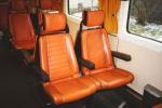 First-class interiors of a Class 2800 (X2905) DMU of SNCF, seen upon turnaround at St-Claude. Facing seats. Interiors were refurbished in 1976-78. First-class seats are very similar to those of RTG Jet Trains, but arranged in 2+2, not in 2+1. Now obviously old-fashioned, but still well-kept. 27th December 2003 P.L.Guillemin (plguillemin@yahoo.fr). |
