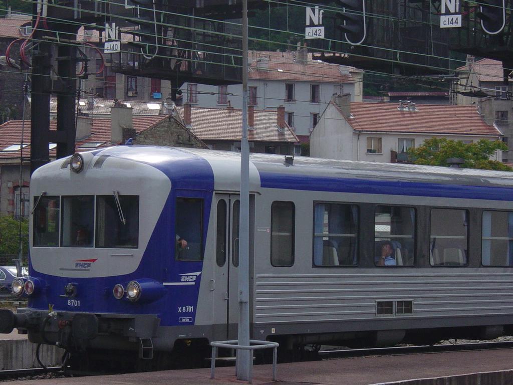 Semi-refurbished Class 4630 (X-4708) of SNCF-AR (TER Rhône-Alpes), seen on a stopping service to Bourg-en-Bresse (via Villars-les-Dombes).