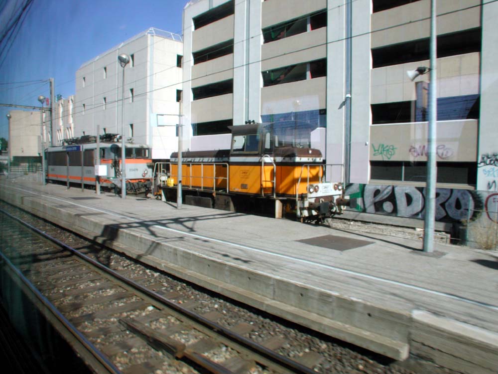 Ein Bauzug vor dem Bahnhof Montpellier. 11. Aug 2001;09:19 Photo from Coolpix 990: A. Senn; http://www.senn.ch |