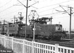 SNCF AC Electric locomotive. BB12005 with an unidentified electric locomotive at Hausbergen shed in Strasburg on April 1st, 1967.