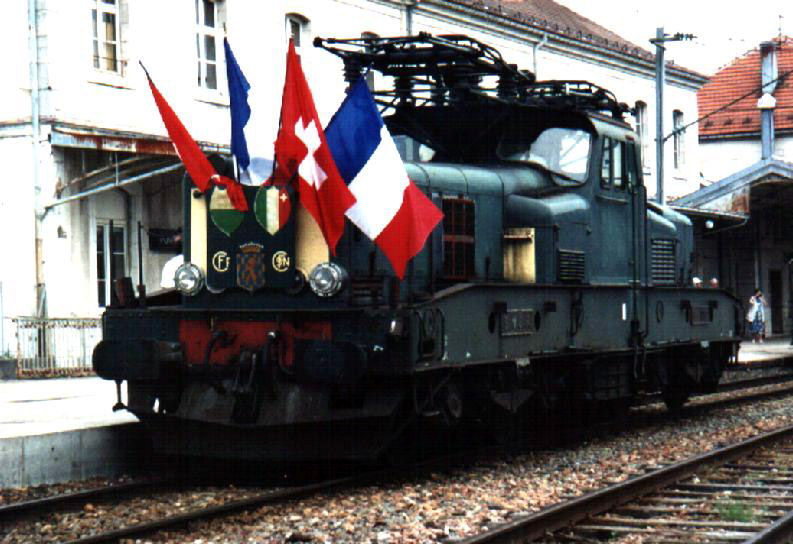 View of the BB 12035 and the swiss locos in Pontarlier station, 11/06/2000. Photo by Romain Viellard (ceferist@hotmail.com) |