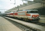 Société Nationale des Chemins de fer Français (SNCF) Electric locomotive BB15000 (4420 kW, 160 km/h, built 1971) The BB15028 is waiting in Basel SNCF with a Corail train to Paris. These locomotives for 25 kV AC 50 Hz have one-motor bogies, their shape and livery (in the colours of the Grand Confort TEE trains) is designed by Paul Arzens. Photo: Tobias B. Köhler (unci@tigerden.com)