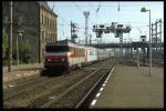 | SNCF 15029 mit assymmetrisch angeordnete Ventilationsroster und Grand Comfortwagen in Luxemburg am 23 Juli 1999. Scanned photo by Leon Schrijvers Leon2711schrijvers@yahoo.co.uk |