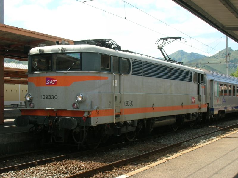 La BB 109330 en tête d'un train "Corail Intercité" Toulouse-Irun en gare de Lourdes (08/2006)