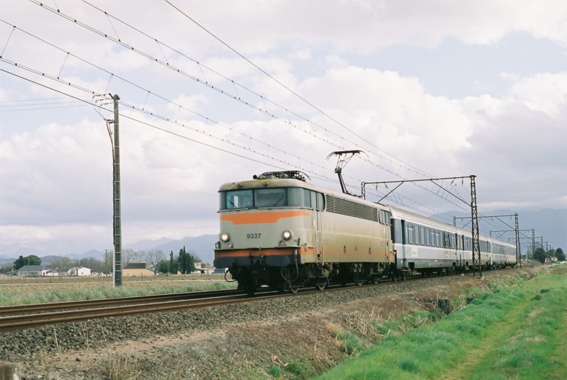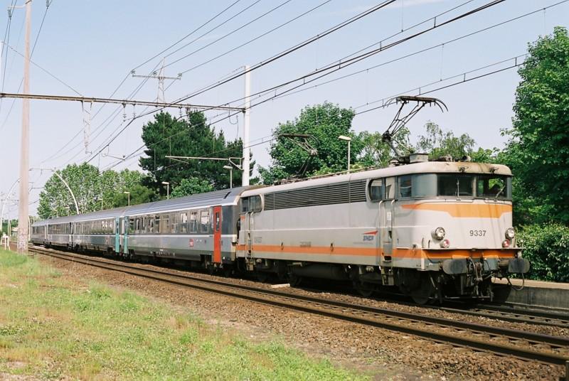 SNCF DC electric (BB-)9337 behind some baggage carts Photo by Sven Manias (sven.manias@gmx.de) |