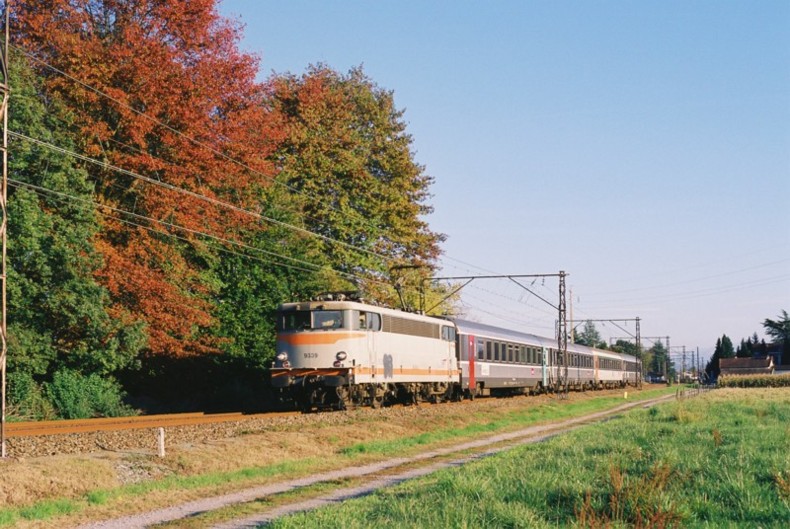 SNCF 109339 with Intercités 14169. Aressy (64), 28/10/2007. Photo Jean-Pierre Vergez-Larrouy (jean-pierre.vergez@tele2.fr) |