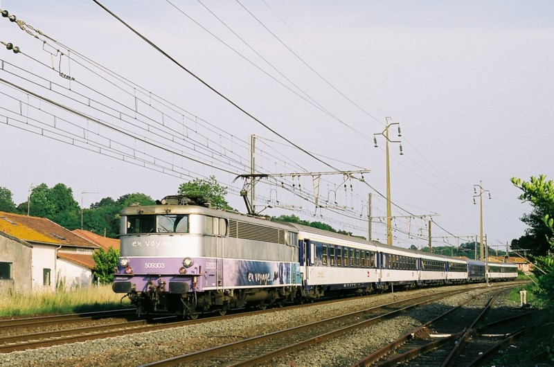 SNCF 509303 with train Corail Lunea 4620 Hendaye-Vintimille. Le Boucau (64), 30/06/2008. Photo Jean-Pierre Vergez-Larrouy (jean-pierre.vergez@tele2.fr) |