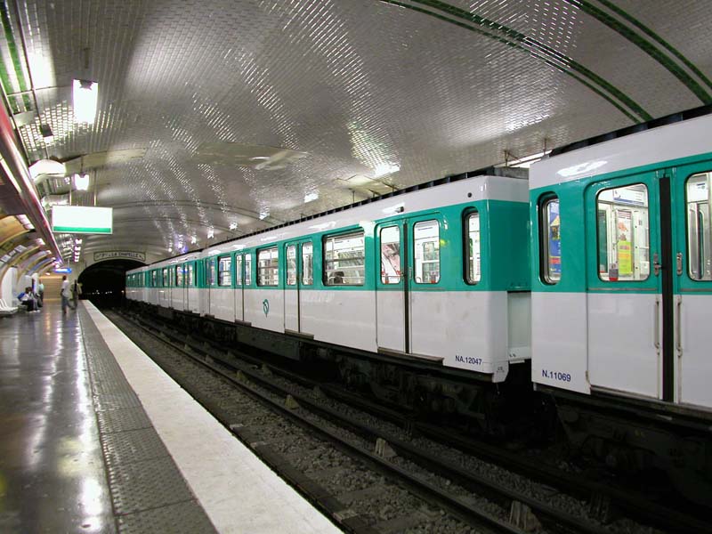MF 67 sur la ligne 12 du métro parisien entrant en station de Concorde. October 25, 2003.