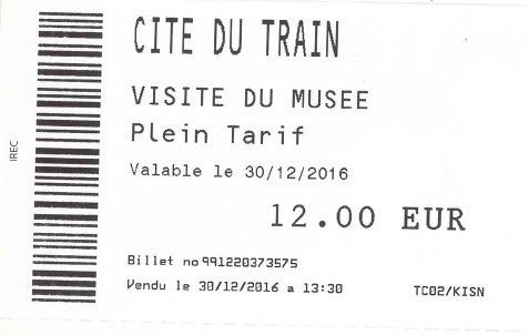 Cité du Train Mulhouse -- Ticket plein tarif. Decembre 2016. Photo by M.Koblischka |