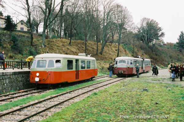 Croisement entre les autorails BILLARD A80D 313, et A150D2 n°222 en gare du Chambon sur Lignon. |
