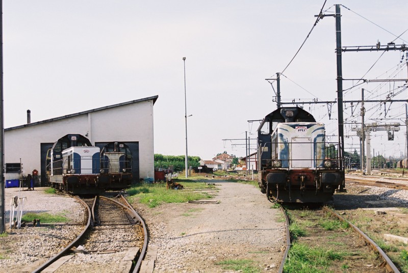 VFLI AT3 PSL 601 (ex SNCF BB 66600) and VFL 63622 (ex SNCF). Morcenx (40), 12/1999. Photo Jean-Pierre Vergez-Larrouy (jean-pierre.vergez@tele2.fr) |