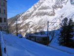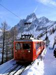 Chamonix_Chemin de fer du Montenvers. Une rame arrive a la mer de glace. 10-03-2005.
