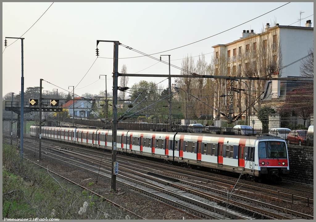 France - RATP MI 84: This eastbound Emu 8469/70 is approaching Maisons-laffitte heading Paris, as the sun is falling. March 2012, 29th Photo Patrick Meunier www.pixyrail.com |