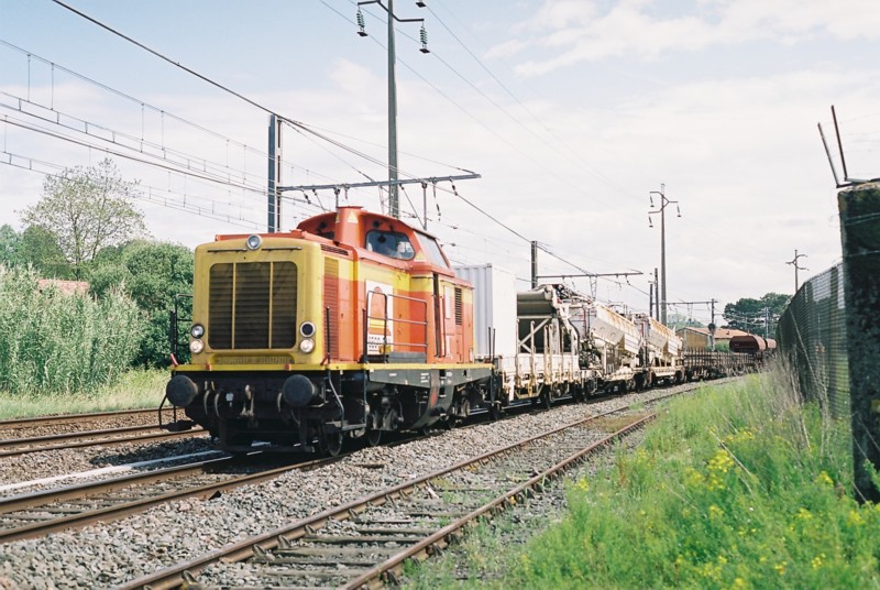 Seco-DG locomotive (600037 and 600039) leading the first ballast train to reach limits of Mouans-Sartoux. The level crossing in front of the locomotive should be crossed the following week. The work of rebuilding the Cannes-Grasse line are going on (the line closed to passengers in 1939 and freight in 1990. It is due to reopen in december 2004) Date : October 3, 2003 Photo : jean-Paul Lescat lescatj-p@azur.fr |