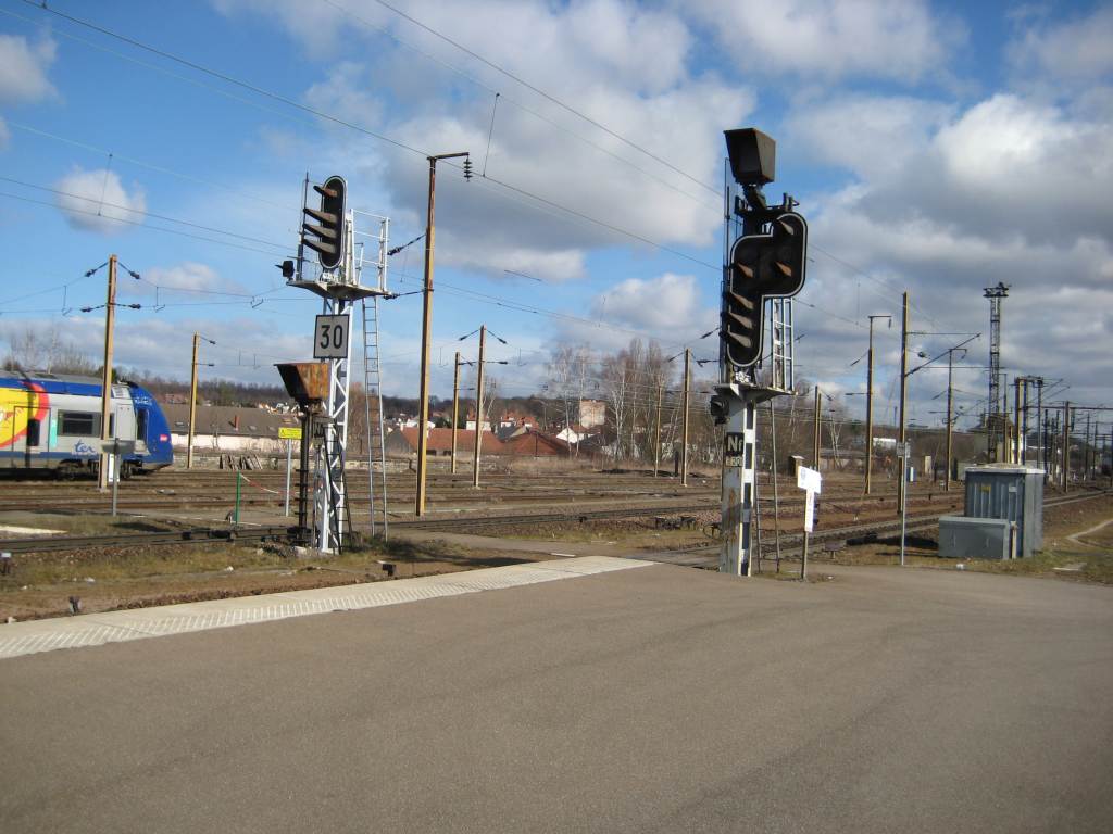 SNCF Bahnhof Forbach -- Ausfahrsignale Richtung Güterbahnhof/Saarbrücken. März 2015. Photo by M.Koblischka |