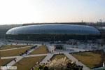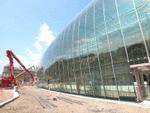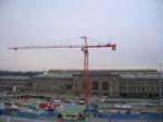 Façade du bâtiment voyageurs de la gare de Strasbourg pendant les travaux de rénovation préparant l'arrivée du TGV Est (19 décembre 2005)