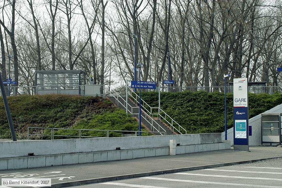 Gares SNCF - Hoenheim Tram Zugang zum Haltepunkt Gare de Hoenheim Tram von der Straßenbahnhaltestelle der Linie B aus gesehen. Die Aufnahme ist am 07. April 2007 entstanden.