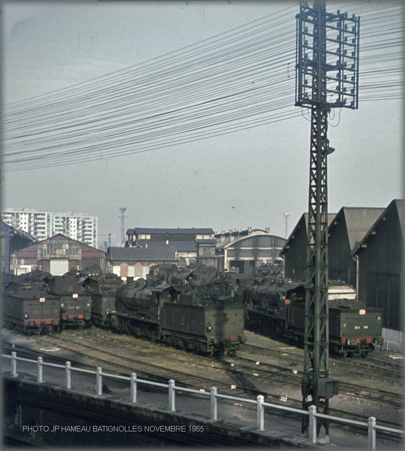 Sncf 140 C attached to the shed of Mantes, is stopping in the shed of Batignolles - November 1965 - Photo JP HAMEAU prepared by Patrick Meunier Pmeunier23@aol.com www.pixyrail.com |