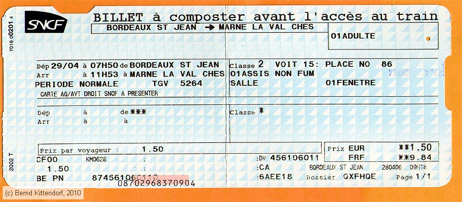 | TGV-ticket, I bought it at Avignon Centre (France) (31 August 2005). |