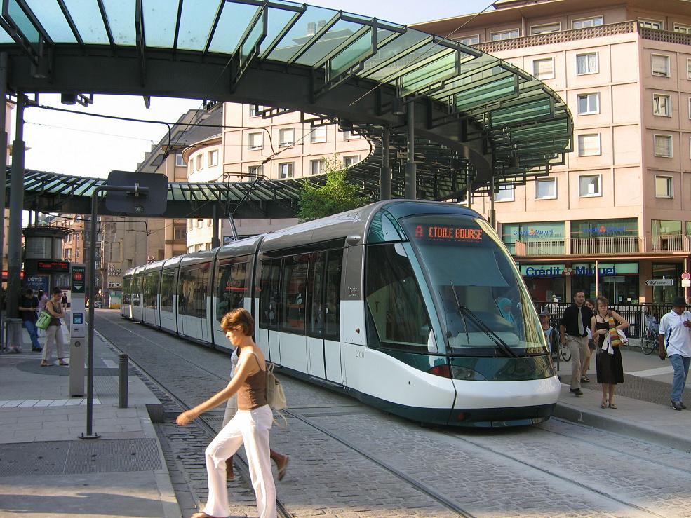 Strasbourg - 2021 Triebwagen 2021 nahe der Haltestelle Homme de Fer am 07. April 2007.