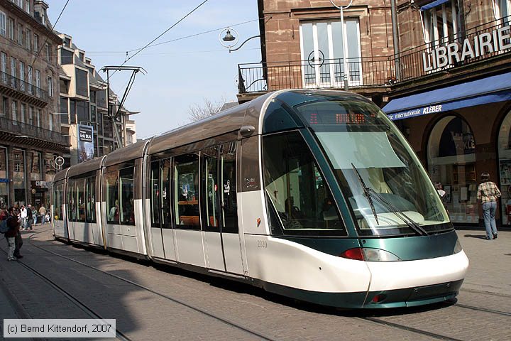 Strasbourg - 2020 Triebwagen 2020 am Quai Kléber nahe der Haltestelle Anc. Synagogue - Les Halles am 09. Juni 2007.