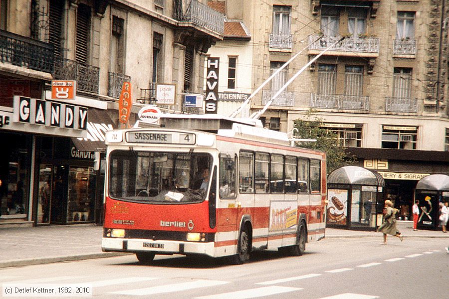 Grenoble - Trolleybus - 714 O-Bus 714 auf Linie 4, aufgenommen am 07. September 1982.