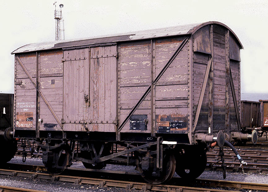 A 12 Ton covered wagon S49445 at the extreme eastern end of the siding at Swanage station on the Swanage Railway.