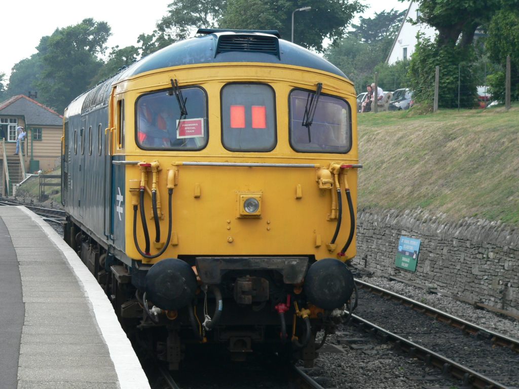 Class 33 diesel locomotive 33108 in the siding at Swanage station on the Swanage Railway.
