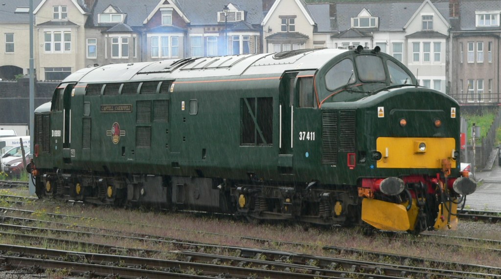 Originally D6990 and carrying the appropriate livery but now named 'Caephilly Castle' 37411