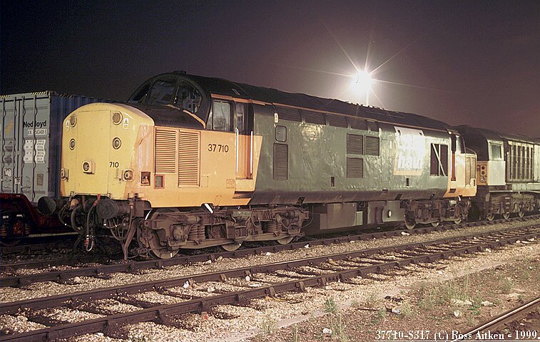 EWS Class 37/7. Loadhaul liveried 37710 stands at Didcot in the early hours of Sat 11th September 1999.